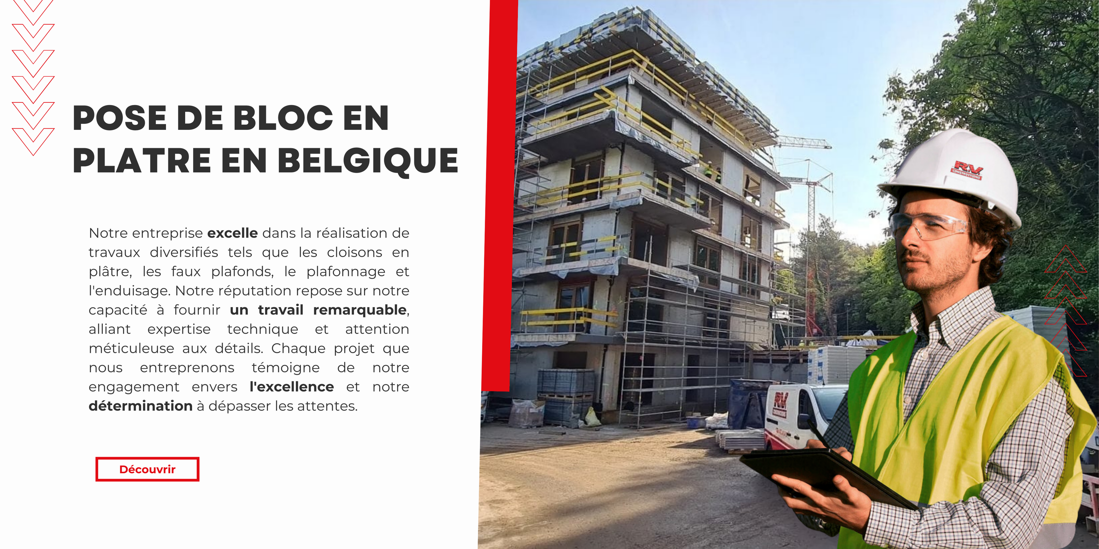 En Belgique, nous sommes la référence dans la pose de bloc de plâtre. Des cloisons en plâtre aux faux plafonds, notre travail est simplement incroyable. Avec notre expertise et notre dévouement à surpasser les attentes, choisissez-nous pour des résultats exceptionnels à chaque projet.